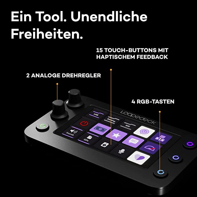 - DAS EINE FÜR ALLES: 1. Kontrolliere deinen Stream, Chat, Audio, Mikrofon und Beleuchtung. 2. Steuere deinen Desktop und starten Medien, Apps und Websites per Fingertipp. 3. Bearbeite Filme und Fotos schnell und einfach dank stufenloser Drehregler. Aktiviere den dynamischen Modus und wechsle nahtlos zwischen Tools, während du dich voll auf das Geschehen auf dem Bildschirm konzentrierst.